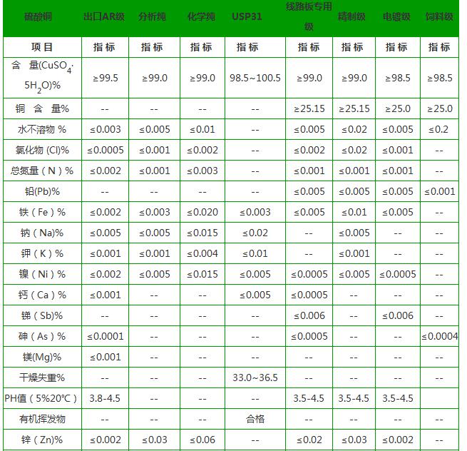 產(chǎn)品用途:用于微量元素添加劑,農(nóng)業(yè)消毒殺菌劑.選礦藥劑,電鍍黃銅和化學(xué)鍍銅,紡織品媒染劑